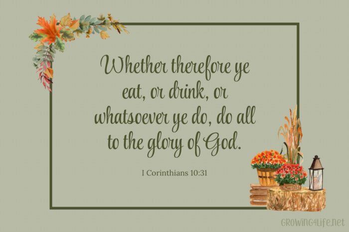 Whether therefore ye eat, or drink, or whatsoever ye do, do all to the glory of God.